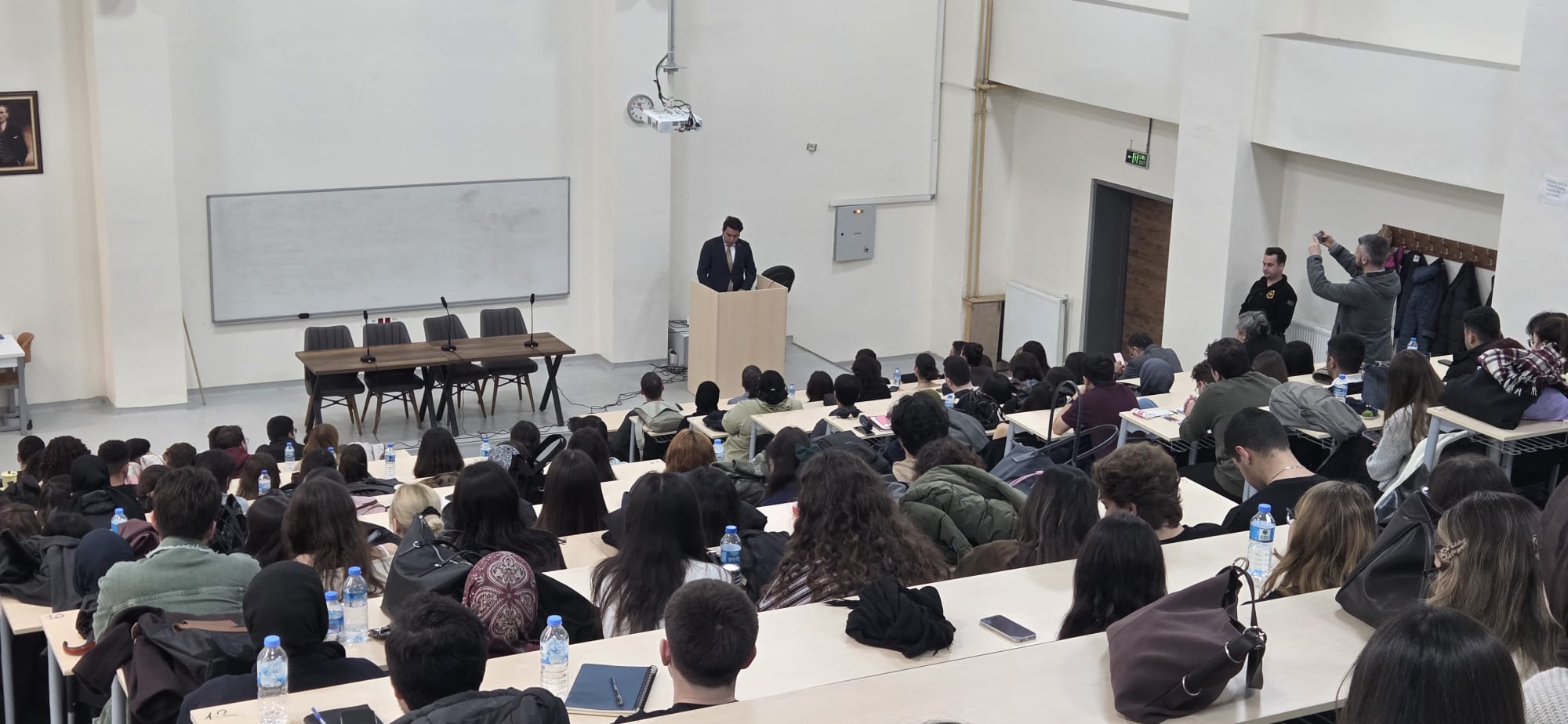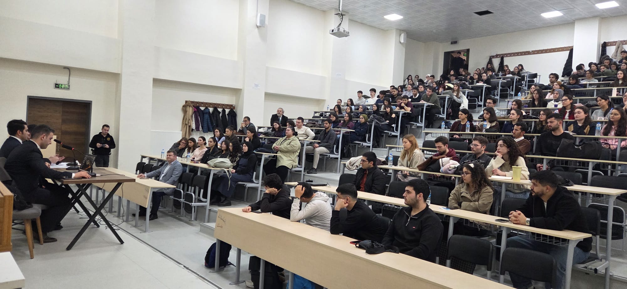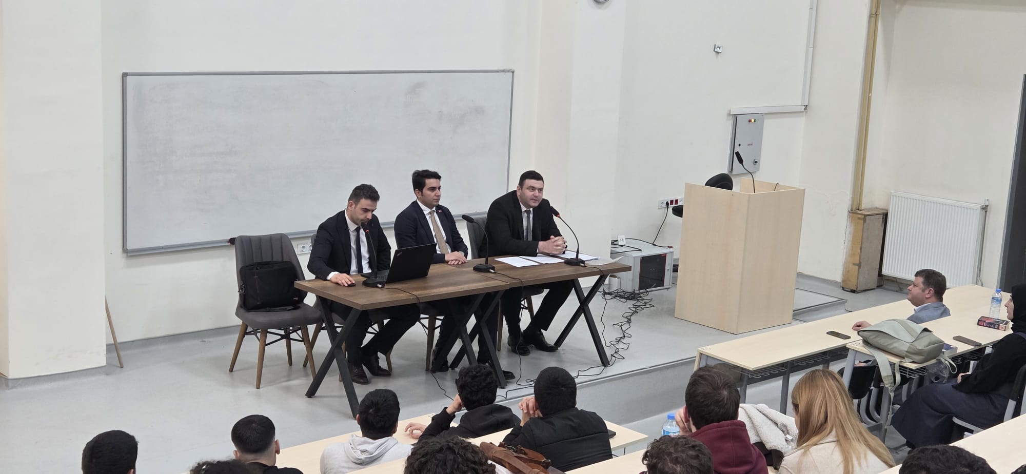 Tekirdağ Cumhuriyet Başsavcı Vekili Mustafa Deren ÖZKOL, Tekirdağ Cumhuriyet Savcıları Mustafa YALDIZLI ve Emre ÇİTİL, Hukuk Fakültesi Dekanlığı ile işbirliği halinde gerçekleştirilen nitelikli ve kaliteli bir panel ile Hukuk Fakültesi öğrencileri ile bir araya gelmekten dolayı mutluluk ve onur duyduklarını ifade etmişlerdir ve öğrencilerimize başarılar dilemişlerdir.